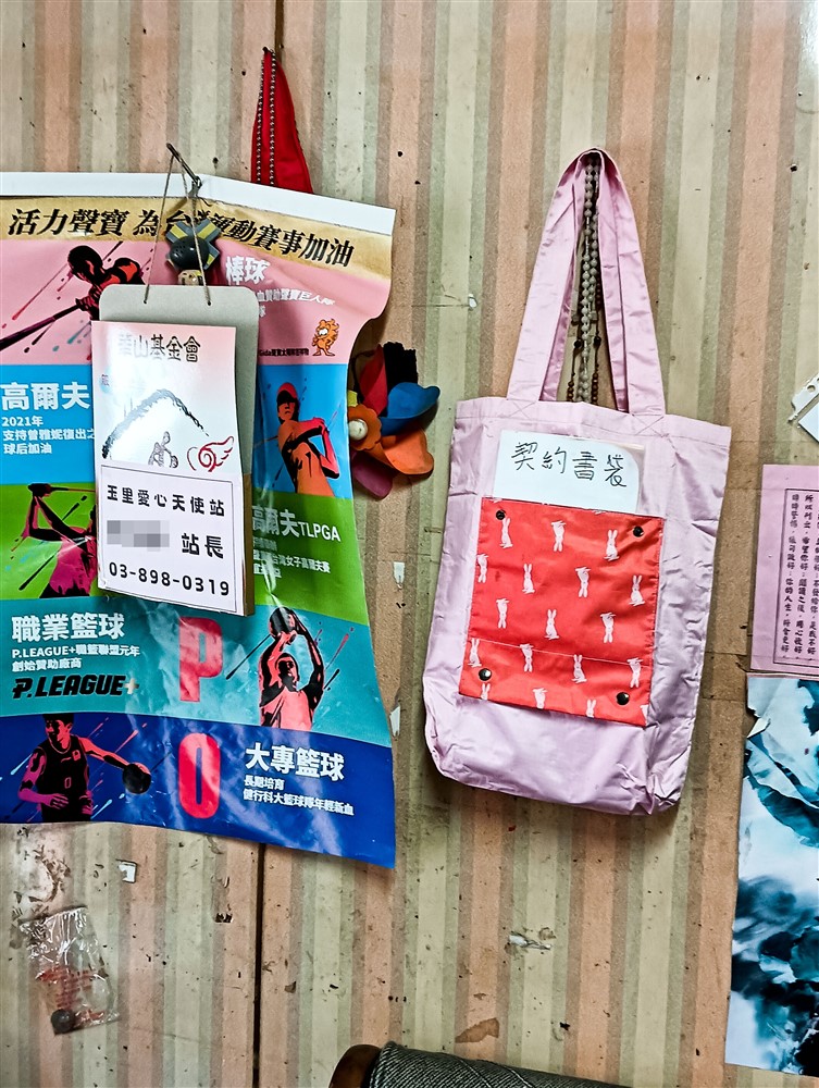 三位居服員輪早中晚班照顧鄭阿嬤,並且透過掛在牆上契約袋中的訪視紀錄本交接傳遞訊息。攝影/洪靜茹