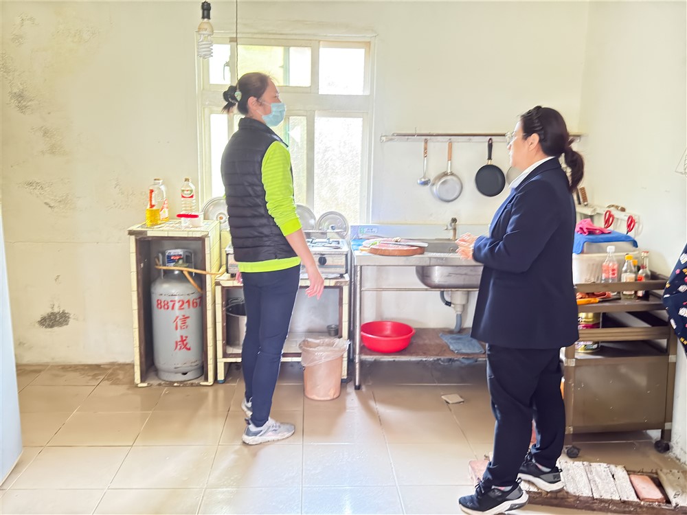 來到後方廚房,每天中午來煮食的郝小姐已經在快手快腳備餐,在沒有裝設排油煙機的空間,僅就著小小的對外窗簡單烹調原型食物。「阿公食量不大,通常會多煮一些飯菜,讓他晚上自行熱來吃。」兩人也稍微交換了對口味濃淡的想法。欣怡喜歡挑選居服員出現的時段一同進到案家訪視,一方面了解服務內容作業實況,若有需要釐清的地方也可以同時進行三方溝通。