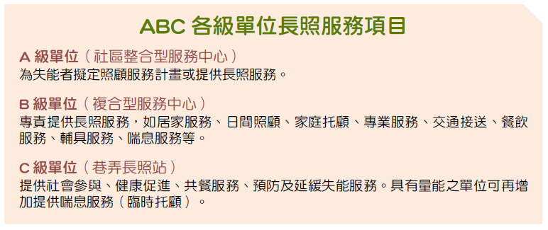 社區整合型服務中心A 個案管理專業人員(簡稱A 個管師或A 個管員)主要提供社區裡「個案管理」與「服務轉介」,確保長照需求者獲得適切的照顧,並定期追蹤服務狀況,協助修正照顧計畫。此外,A 單位也肩負社區資源連結的任務,以提升在地長照服務的可近性與整合性,讓長者及身障者都能獲得更完善的照顧支持,可說是推動長照2.0 的靈魂角色。