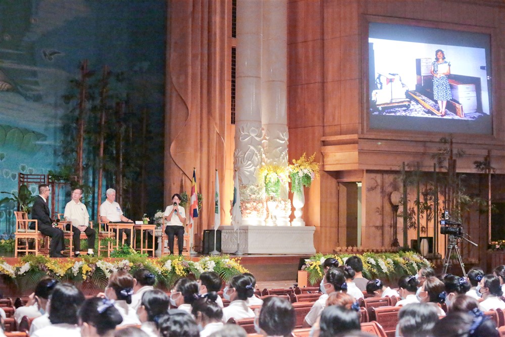 一年一度的中秋月圓相約,就在〈因為你,因為我〉的歌聲中,祈求世界充滿更多愛的感動。明亮的月光,伴隨著笑臉盈盈的學員們慢慢步行回到寮房,準備迎接第二天精采的課程與期待已久的精舍巡禮。