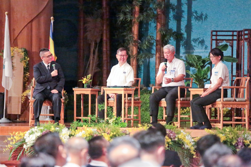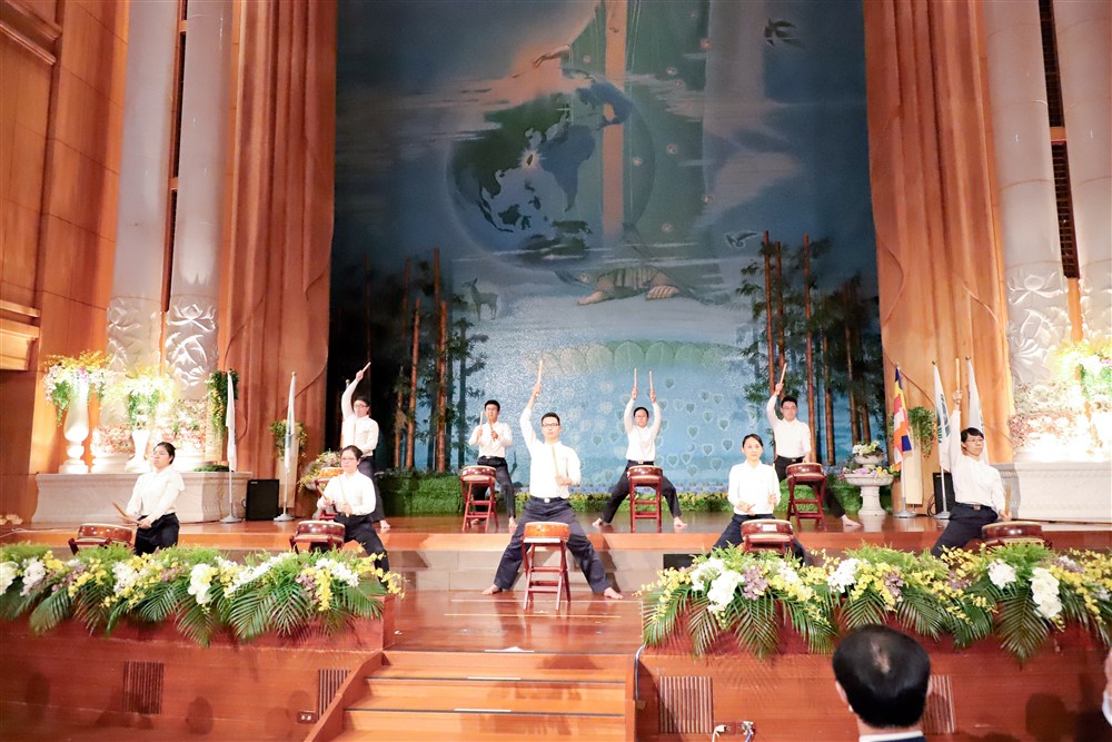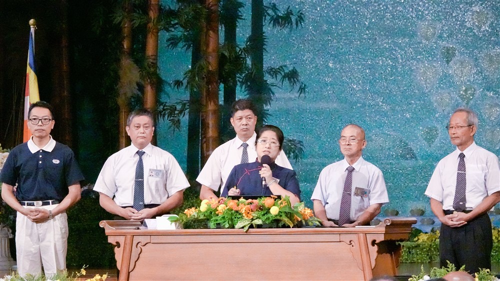 高雄「慈優鼓隊」年輕菩薩舞動的鼓聲響起,為年會揭開序幕,更以八種語言的串燒歡迎歌曲,帶動全場學員及所有工作團隊歡快地拍手、轉圈與跳動,相見歡喜共結好緣。