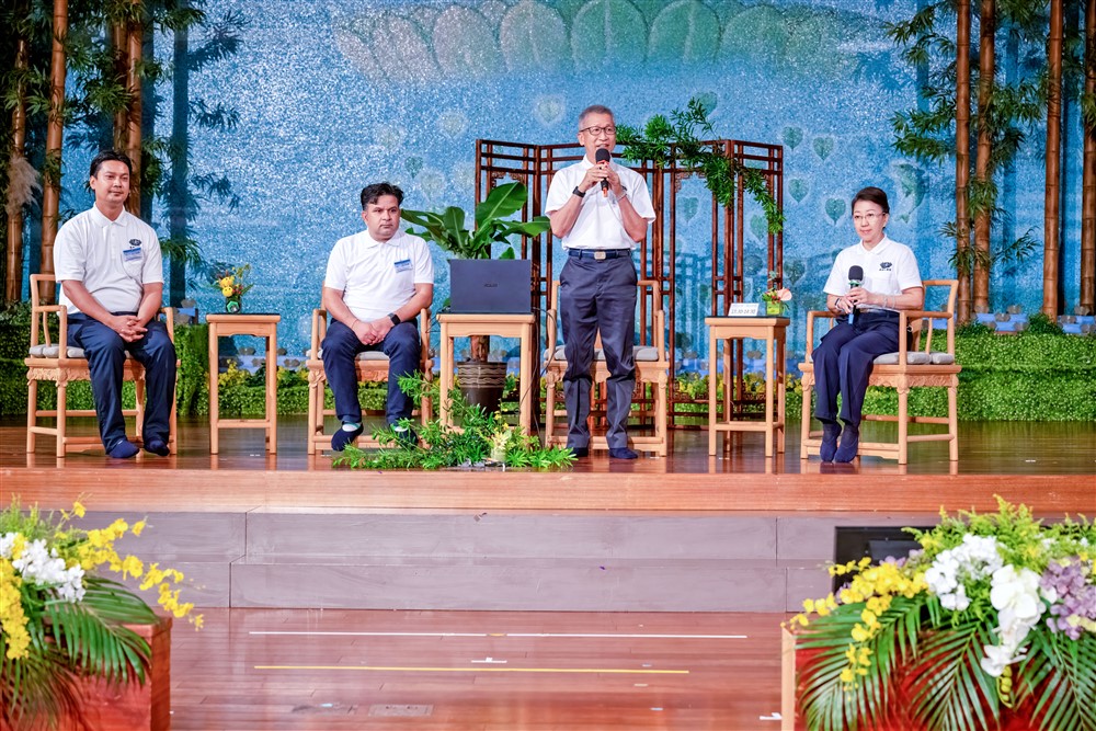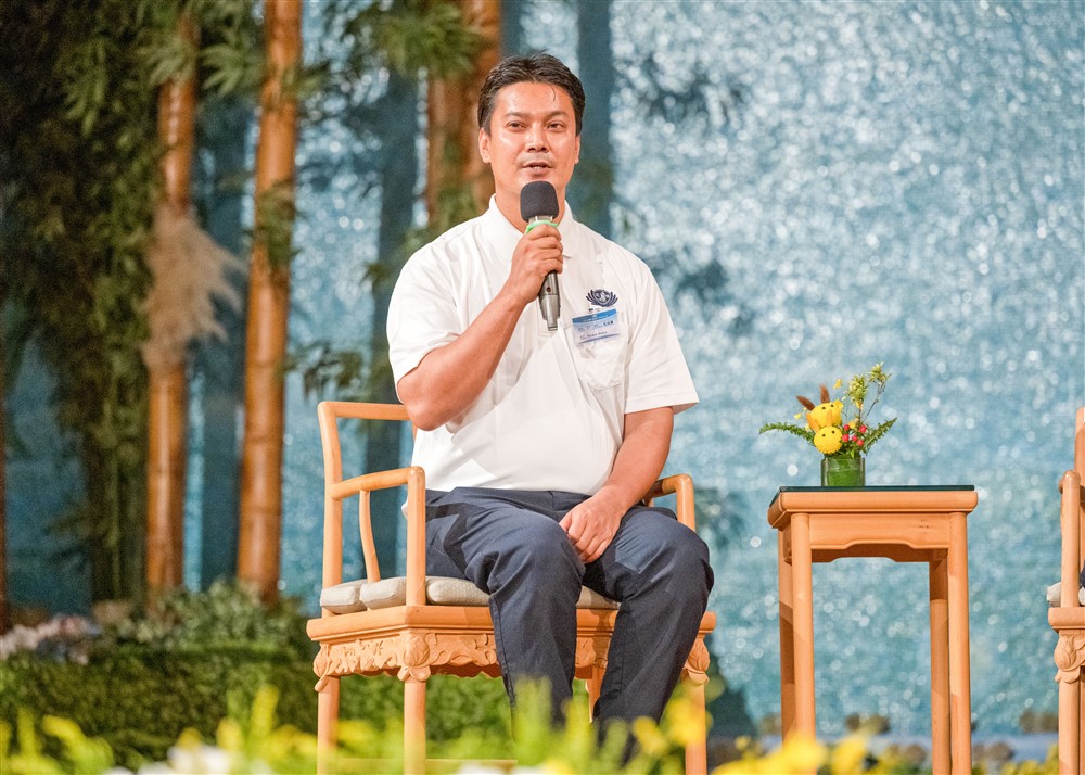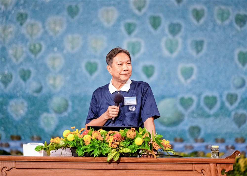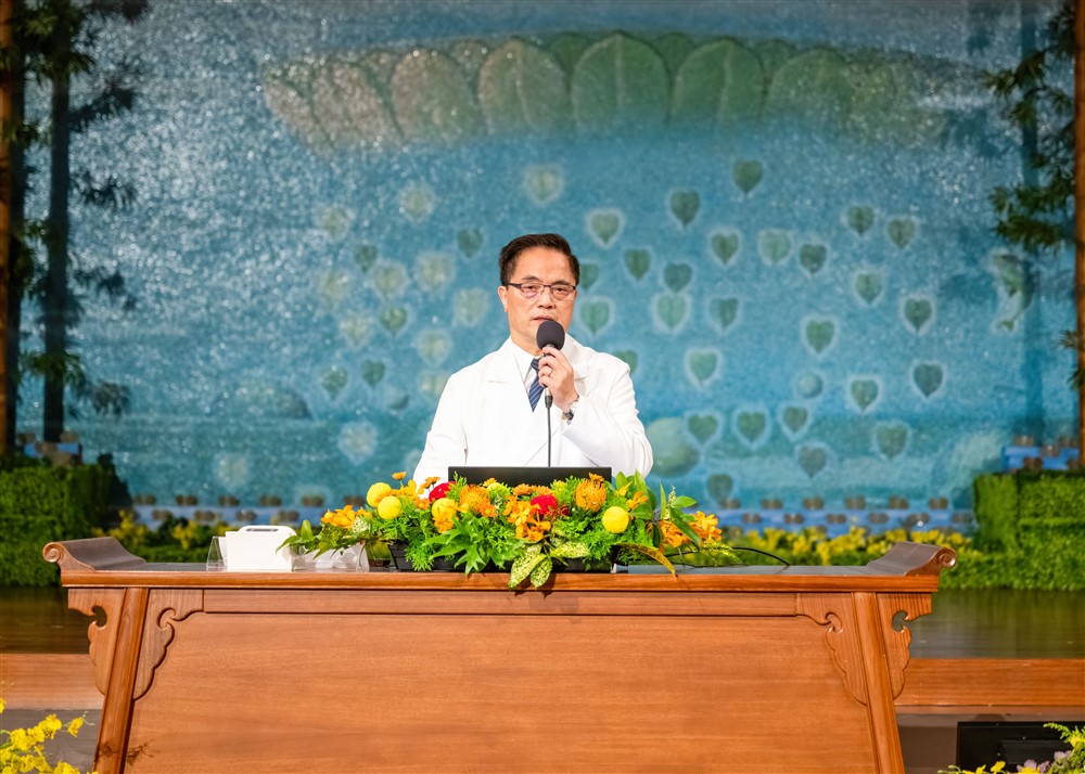 慈濟醫療法人林俊龍執行長感恩人醫團隊終能重新回到花蓮團聚,祝福人醫年會期間,每位學員都能「relax,sit back and enjoy the program.(放輕鬆、坐下來、開心參與課程)。」