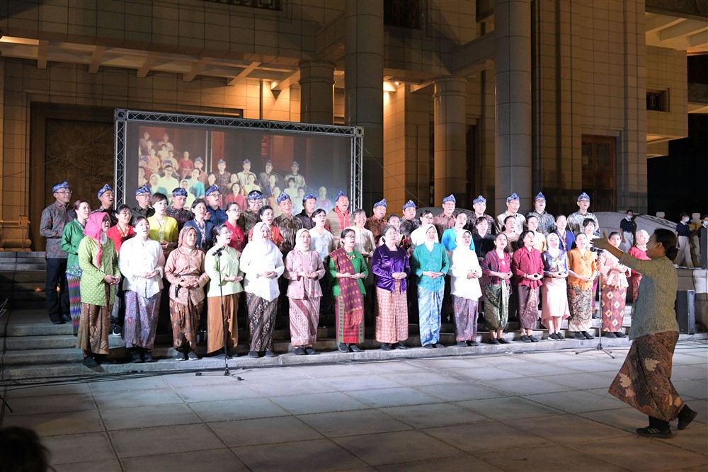 歌聲令人驚豔的還有來自印尼慈濟醫院的合唱團約四十五人,穿著芭雅服,在指揮老師的帶領下,優美高亢的四部和聲,演唱印尼各地民謠的組曲,不知道他們花了多少時間練習,才有如此完美的演出,給全場帶來美聲的宴饗。