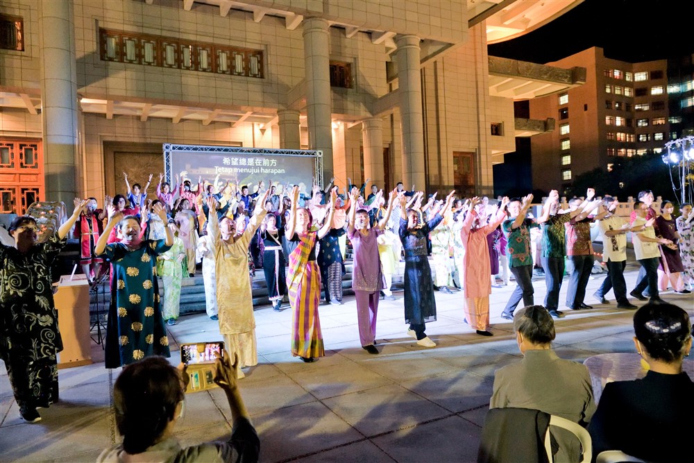 馬來西亞團隊表演Rasa Sayang 歌舞,並以馬來語唱出大愛劇場主題曲〈美麗晨曦〉,真誠的笑容,溫馨的歌曲,搭配不同族裔各種花色的服裝,令人目不暇給。