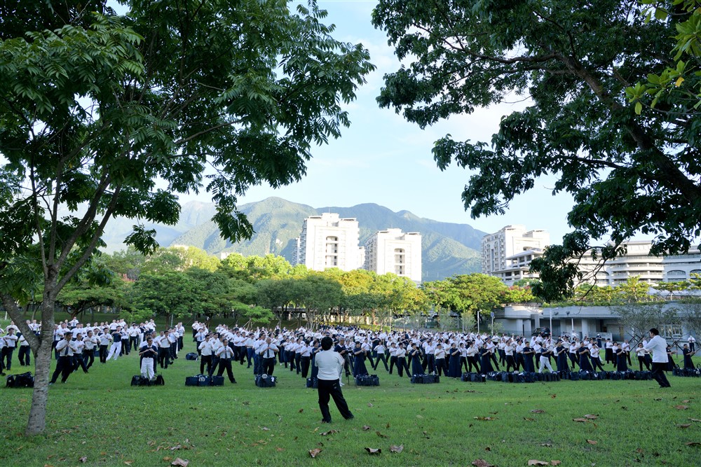 九月三十日清晨,人醫學員步行到慈濟大學大愛樓前廣場的綠色草坪上,打太極拳做早操運動。攝影/趙水源