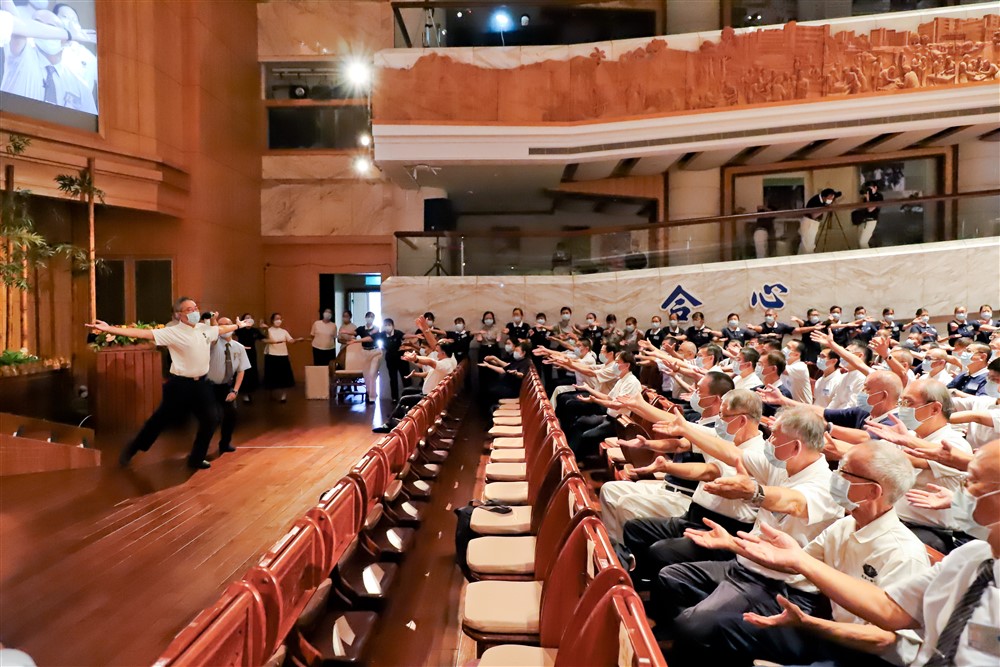 花蓮慈院合唱團由吳彬安副院長(第一排中)領唱〈月亮代表我的心〉。攝影/李則忠