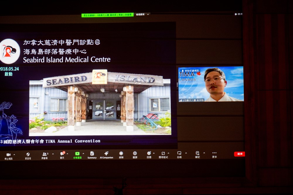 加拿大人醫吳承翰醫師透過連線分享在海鳥島為部落居民進行中醫義診的經驗。截圖/李則忠
