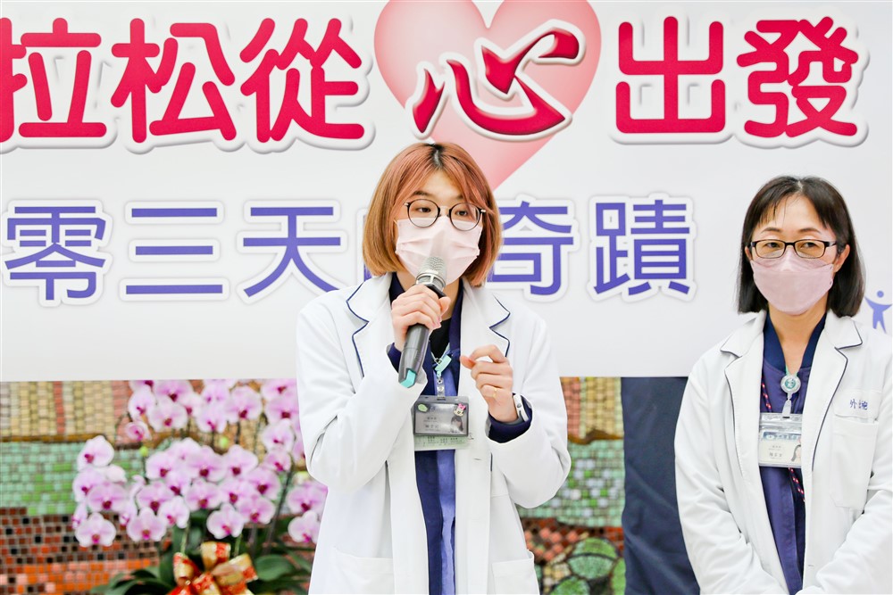 馬拉松當天在醫護總站執勤的花蓮慈濟醫院急診護理師田于婷,第一時間參與急救,當時一心只想著趕快救回黃先生。右為急診護理長陸家宜。攝影/鍾懷諠