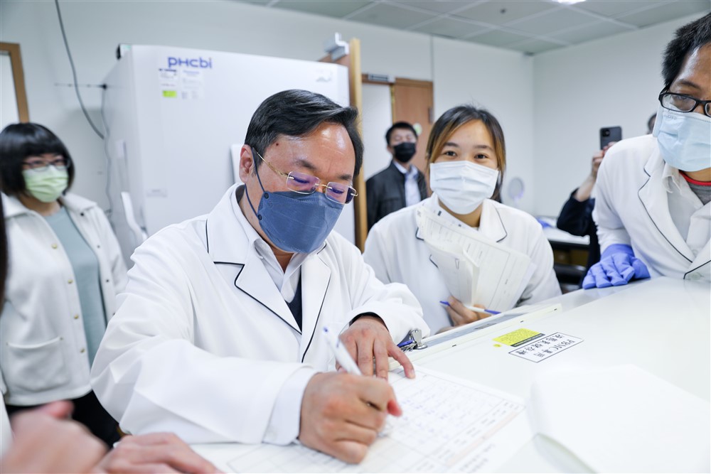 花蓮慈院執行首例 CAR-T 治療,二○二三年三月二十七日將病人周紹賓醫師體內萃取出的T 細胞,專機送往瑞士進行基因改造製程,行前由基因暨幹細胞研製中心孫立易主任檢視確認簽核。攝影/黃思齊