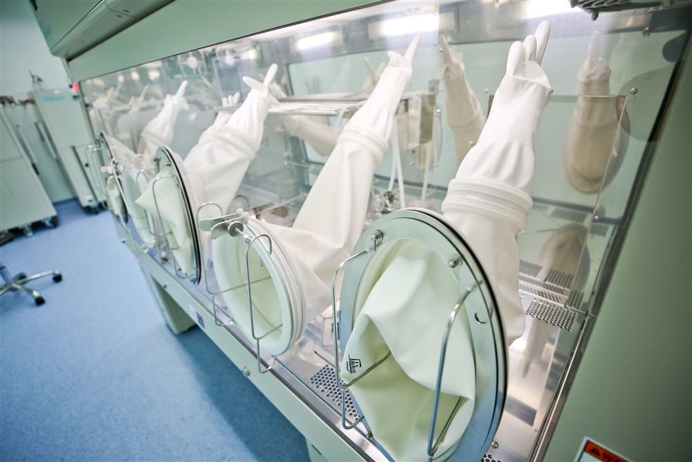 研製中心是臺灣目前唯一使用「細胞操作專用隔離手套箱」以製造間質幹細胞的實驗室。圖為二〇一九年中心啟用前所攝。攝影/楊國濱