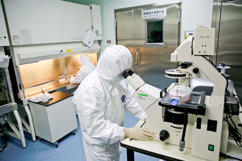 研究人員在高規格的作業環境下進行幹細胞實驗。攝影/黃思齊