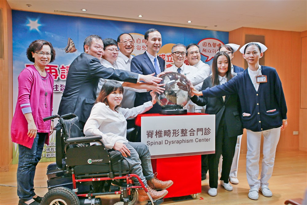 二○一七年,時任新北市朱立倫市長彙整各界資源,與台北慈濟醫院合作成立「脊椎畸形整合門診」,照護脊柱裂患者。其後台北慈院為照護更多元疾病改為「脊椎病變整合門診」。圖/台北慈濟醫院