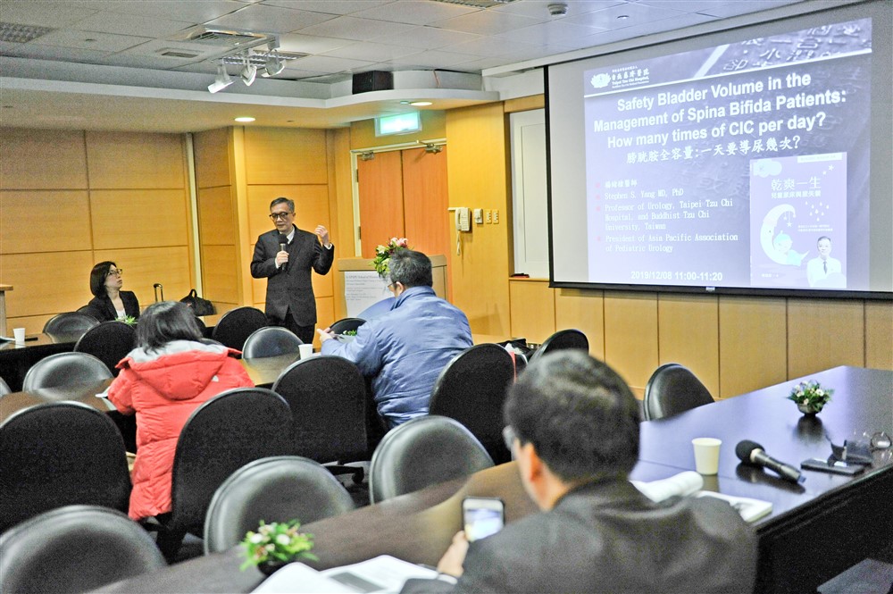 台北慈濟醫院兒童泌尿專家楊緒棣副院長說明,脊柱裂兒童也能做好尿尿大小事。攝影/范宇宏