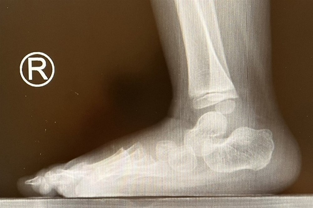 部分脊柱裂孩子的足弓特別高及內翻,是由脛骨後肌和腓骨肌之間的肌肉不平衡以及內在肌無力引起的。圖/台北慈濟醫院