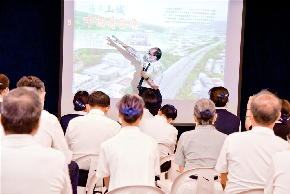 臺灣面臨人口老化,推動長照2.0「在宅醫療」,而上人早在五年前就思考在三義成立醫院,就是要倡導在宅醫療的觀念,讓中醫走入居家。葉院長說:「要成立醫院,至少要五萬人口才不會虧損,三義地區只有八千多人,慈濟在這裡開醫院,大家都捏把冷汗!」