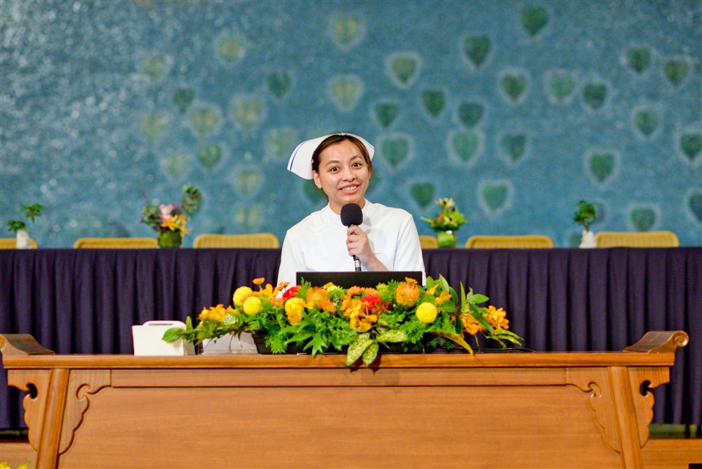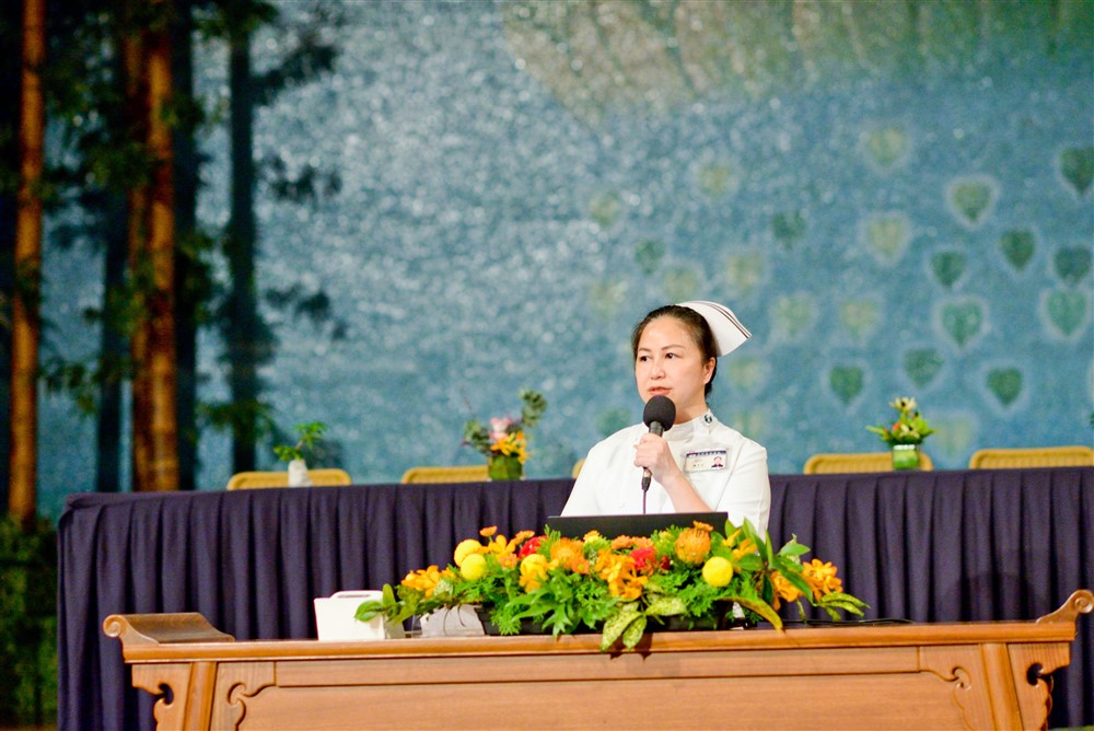 護理的分科座談在講經堂舉辦,由花蓮慈院鍾惠君主任開場,「慈濟的護理,因為看見了病人的需要,發展出『人形圖』,因為疫情照護需求,而有了數位護理,有關實證照護、創新及敘事護理,從醫療志業出版的《志為護理》期刊上都能找到,近幾年都有長足的成果。」獲得臺灣兒童醫療貢獻獎的鄭雅君督導,接續上臺分享,「一個癌症被診斷出來,不僅只是一個個案的事,而是整個家庭接受挑戰的開始,即使治療結束了,後續的追蹤照護仍不能間斷。」
