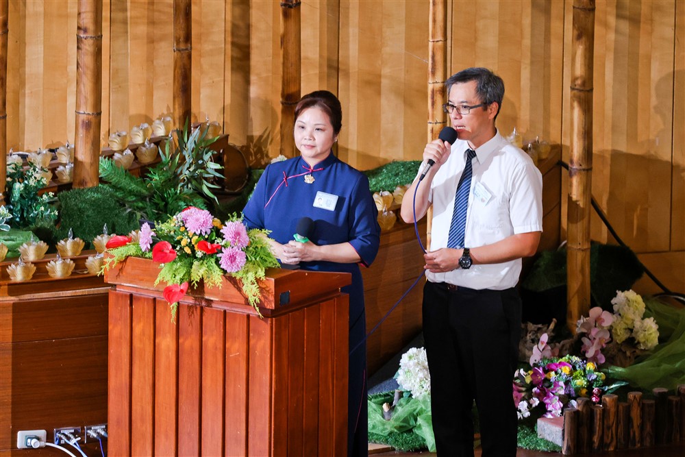 年會司儀為中區慈濟志工洪芯宜師姊(左)。學員長由台中慈院李冠儀醫師(右)擔任,他亦是年會主題曲〈城裡的月光〉的主唱。攝影/楊凱誠