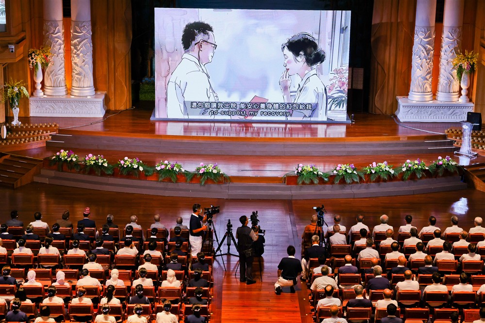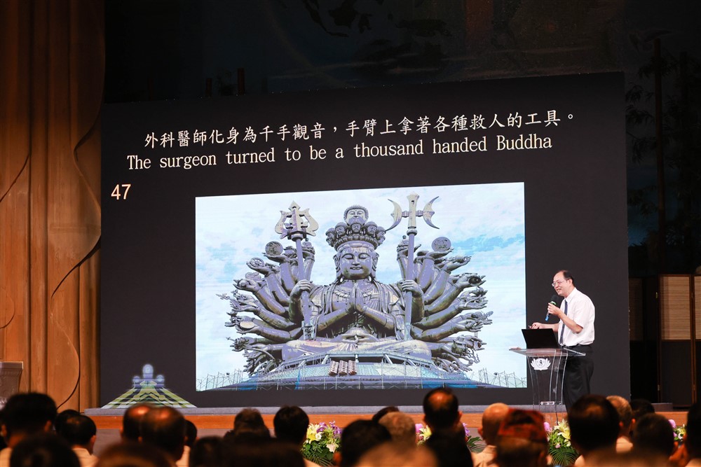 緊接著臺灣、美國、印尼、菲律賓的人醫代表演繹〈四弘誓願〉,以「誠心、正心、信心、實心」,「眾生無量誓願度」,是菩薩的誓願,也是人醫行醫的初心!