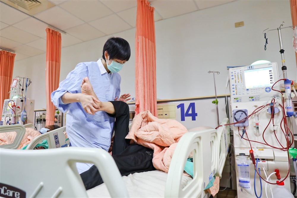 六十四歲的腎友阿香(化名),自二○二二年七月開始接受中醫治療,初期因下半身痠麻沒有力氣,走路不穩,連騎機車或自行車都有困難,生活除了洗腎之外,外出都必須由先生陪伴。直至觀察到他床的腎友經中醫治療後疼痛緩解,阿香才主動向中醫師表示自己也想嘗試;治療不到半年,症狀就獲得改善,阿香開心不己:「我已經可以自己騎機車去市場買菜,早知道應該早一點看中醫的!」