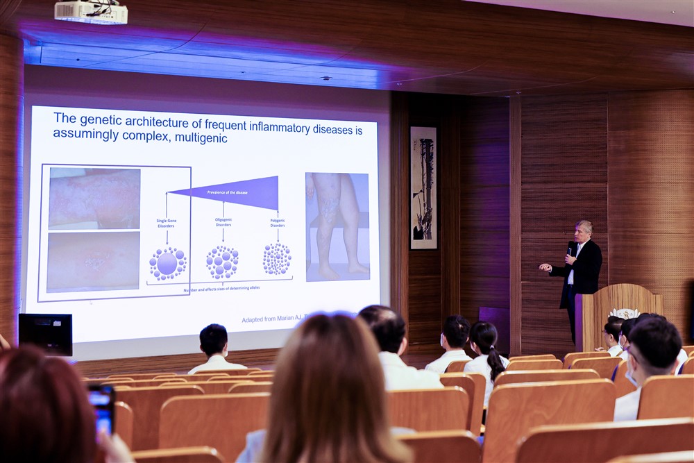 法國巴黎聖路易斯大學醫院皮膚科教授、國際乾癬醫學會理事長埃爾維‧ 巴卻利(Hervé Bachelez) 教授於花蓮慈院全院學術演講分享乾癬精準治療的最新研究。