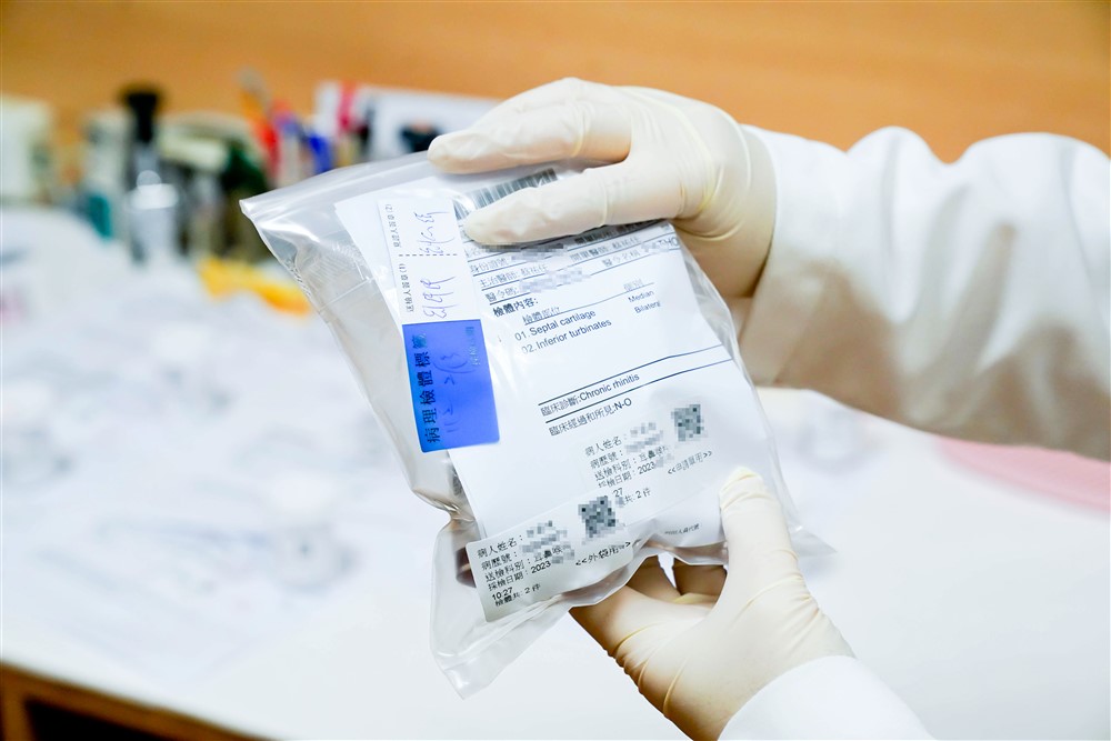 病理科同仁確認檢體密封完整性,並掃描條碼建檔。攝影/盧義泓