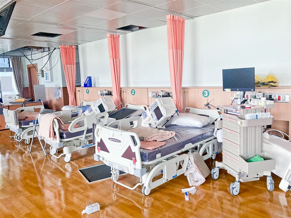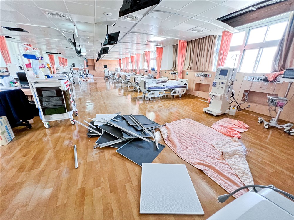 二○二二年九一八大地震震壞了全新完工的透析室(上圖),一週的時間內全力修復(下圖)。