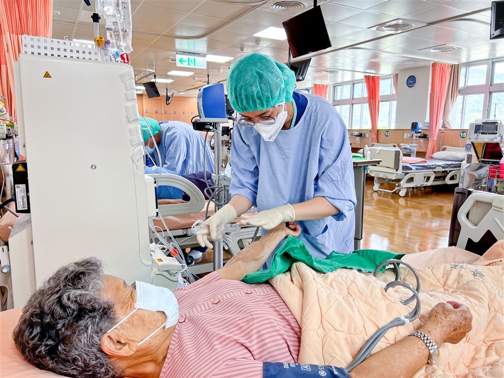 雖然地處南花蓮的小鎮,玉里慈濟醫院血液透析室醫護團隊陣容完整,腎友一旦出現緊急狀況,急診室可立即協助處理,腎友進行血液透析的同時,有腎臟內科醫師坐鎮指導,還有心臟血管外科醫師待命支援,推行人工腎臟單次使用、減少重複使用的感染風險,當洗腎病人的瘻管出現問題時,可儘快得到妥善的診斷及處置。