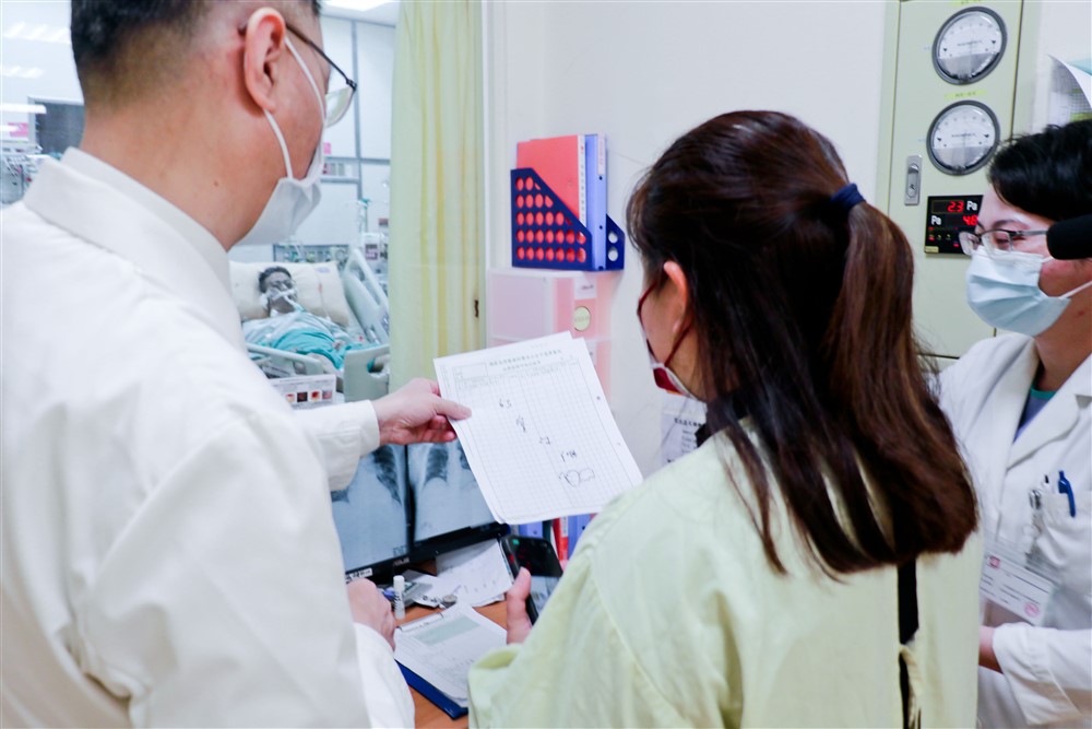 郭先生在加護病房甦醒後,隔著玻璃窗看見鄭主任查房,還虛弱的他動手寫字──「好愛你們」感謝醫療團隊。後續由護理師細心照顧,度過術後危險期、觀察期,撤除部分管路,轉住一般病房,重新學習呼吸、走路訓練肌力,超過三十多天悉心照顧,終於能夠出院。鄭主任表示:「不只是醫治病人,更醫治了家庭。」