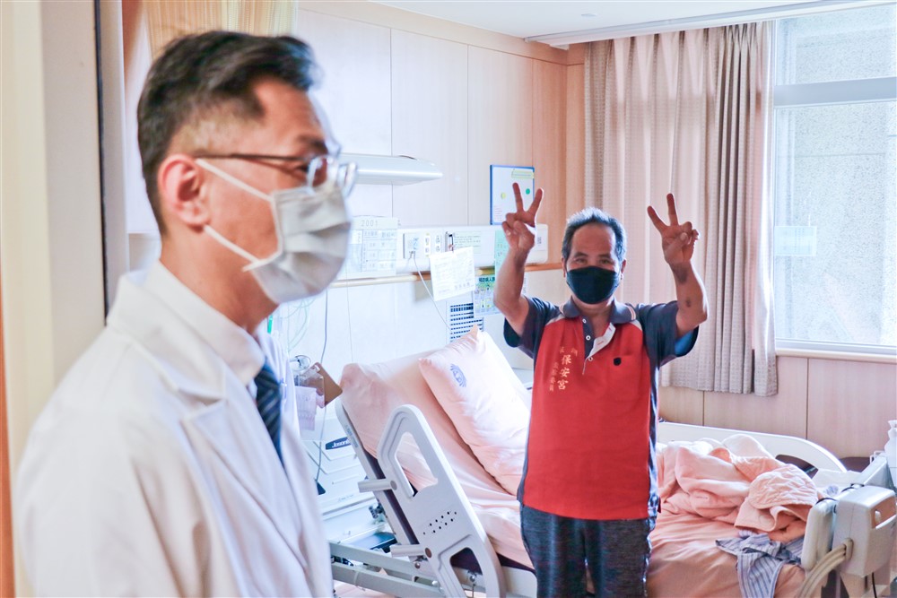 洪先生出院之際,見到鄭紹彬主任,開心雙手比YA !攝影/江柏緯