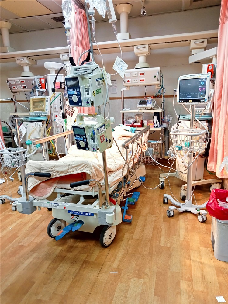 擔心病人病情急速惡化,就近安置在急診護理站旁,讓護理師一眼看得到監測數值變化。