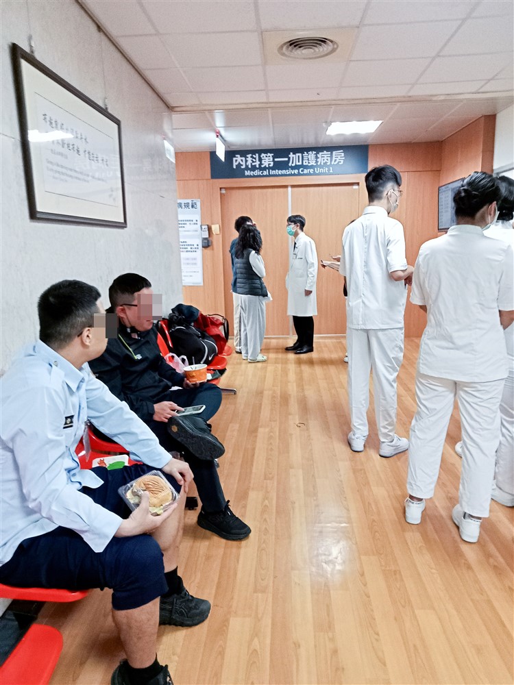 進到花蓮慈濟醫院急診室,經檢傷分類需緊急處理,先進「急救室」裝上監測儀器及點滴輸藥,再送出到一般觀察區。