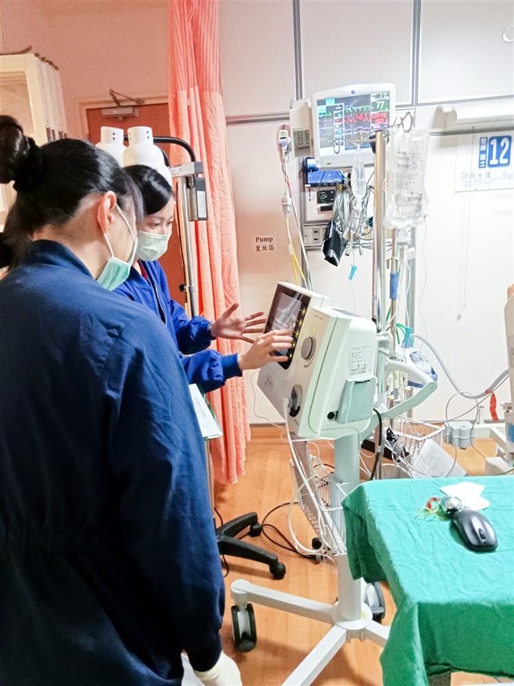 微型人工心臟Impella(左心室心臟幫浦)對於外科加護病房也是少用且新型的設備,蘇筱雅副護理長正在教護理師操作並說明上面的數值,該如何記錄。人工心臟的輸出效能調整,則需由主治醫師下指令決定。