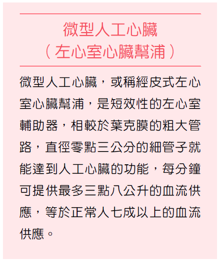 並以微型人工心臟成功搶救性命,病人甚至不裝任何儀器地康復出院……