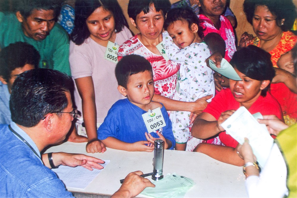 一九九九年印尼慈濟分會成立,二○○二年雅加達發生紅溪河水患,促使印尼慈濟從慈善走向醫療開展。當時臺灣、菲律賓、新加坡、馬來西亞等地共兩百多位醫護人員及近五百位志工來到印尼進行三天跨國義診,高達一萬二千三百零七人次受惠,破了TIMA 有史以來的紀錄。其後成立印尼大愛義診中心,每三個月一次大型義診來幫助災民。二○一七年義診中心升格為大愛醫院。