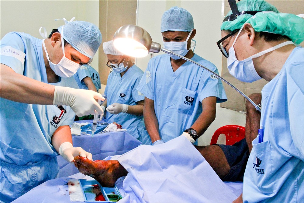 二○○六年印尼日惹震災義診上,慈濟人醫會第一次能在海外的醫院裡進行手術,這都仰賴印尼慈濟人的積極聯繫。當時一位父親非常憂心,因為他的女兒嚴重骨折,沒辦法開刀,「還好我們去了,大家一起想辦法,包括小簡(簡瑞騰)院長、台北慈院的骨科醫師,一起幫她開刀、換藥。」女孩逐漸康復,終於讓這對父女嶄露笑容。