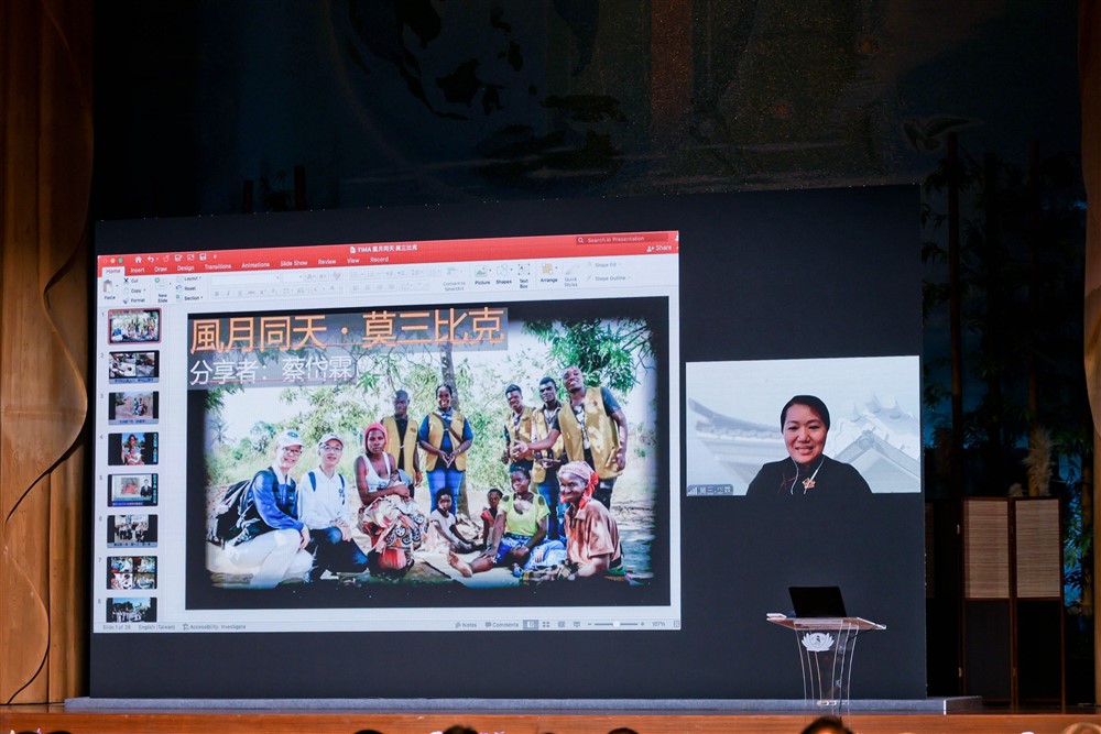 莫三比克志工蔡岱霖透過視訊分享帶領本土志工推動慈濟志業的一步一腳印。攝影/徐金生