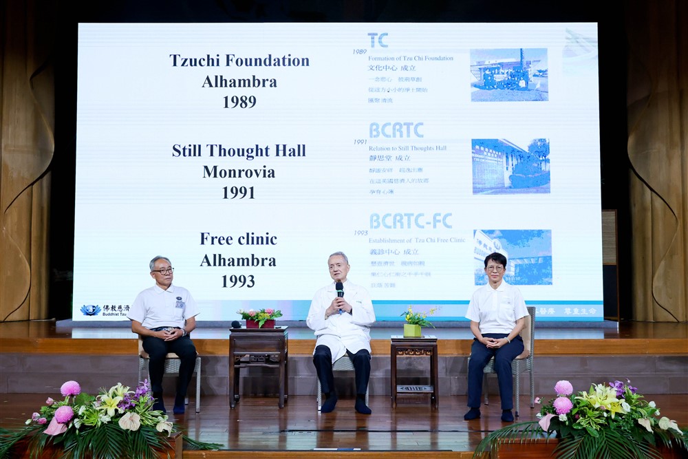 林俊龍執行長淺談美國慈濟義診中心的草創;陳恂滿醫師談及美國西岸醫療義診後續三十年的發展,廖敬興醫師分享美國東岸紐約人醫會的服務。