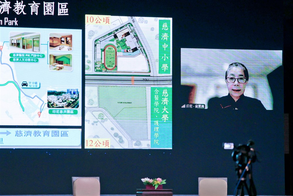 台中慈濟醫院簡守信院長與雲端連線的慈濟印尼分會資深慈濟人郭再源及執行長劉素美,三位講師分享慈濟在印尼「慈善、醫療、教育與人文」四大志業的足跡。