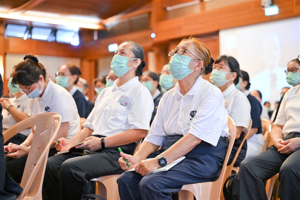 會中特別播放菲律賓呂秀泉副院長與臺灣蔡宗賢醫師二支感人的「人醫身影」影片。簡守信院長說明,兩位人醫前輩過世十二年了,所以聲音的部分完全以AI 模擬生成,影像來自大愛電視臺剪輯過往的報導,「他們沒有直接講過這些話,但是在訪問稿中,都留下這些文字紀錄,我們就把這些文字組合,運用AI 模擬重現。讓大家知道,他們的人生,因為有慈濟,發生多大的改變。」人醫菩薩身影結合AI 生成配音,彷彿他們二位的原音重現,字字句句,是叮嚀,亦是期許。