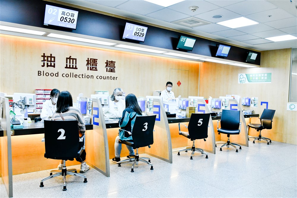 抽血後之血液試管可以直接投入抽血櫃台下方檢體運送軌道,再搭配全自動投遞設備與裸管傳送系統,以單支檢體、即時、連續不間斷、先進先出的運送方式送入實驗室全自動化(Total Laboratory Automation, TLA) 檢驗系統進行全自動離心、分類、檢驗分析、儲存等檢驗作業。在尿液檢驗部分,病人收集檢體後可以直接投放在廁所內的尿液收檢窗口,檢體透過全自動即時傳送軌道送入實驗室內,以警示燈提醒醫檢師立即檢驗。