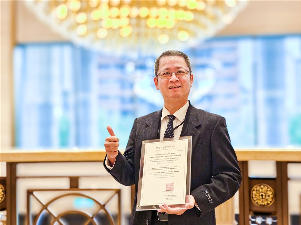 臨床病理科在主管的支持、協力單位的幫助與醫檢師同仁全體用心的投入下,以「臨床實驗室建置智能單件流檢驗流程以提升門診服務品質」在二○二三年榮獲SNQ 國家標章認證殊榮,為病人安全提供了多一分的保障。