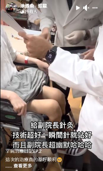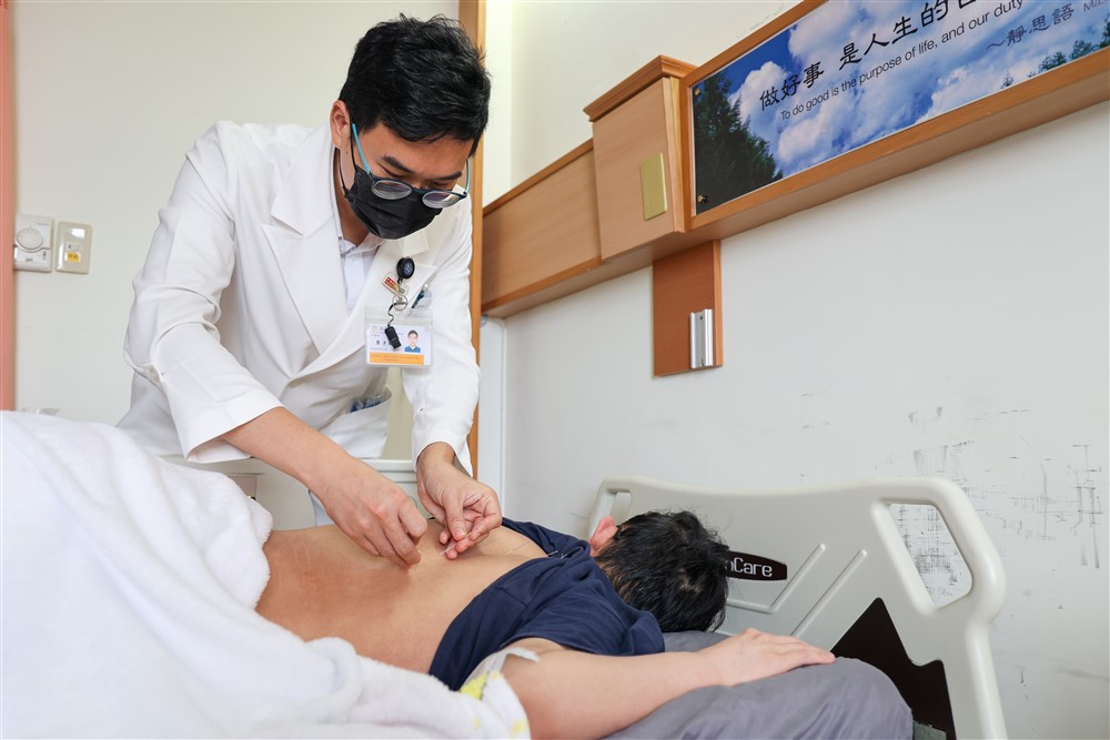 花蓮慈濟醫院中醫部龔彥綸醫師為涂先生針灸治療。攝影/劉明繐