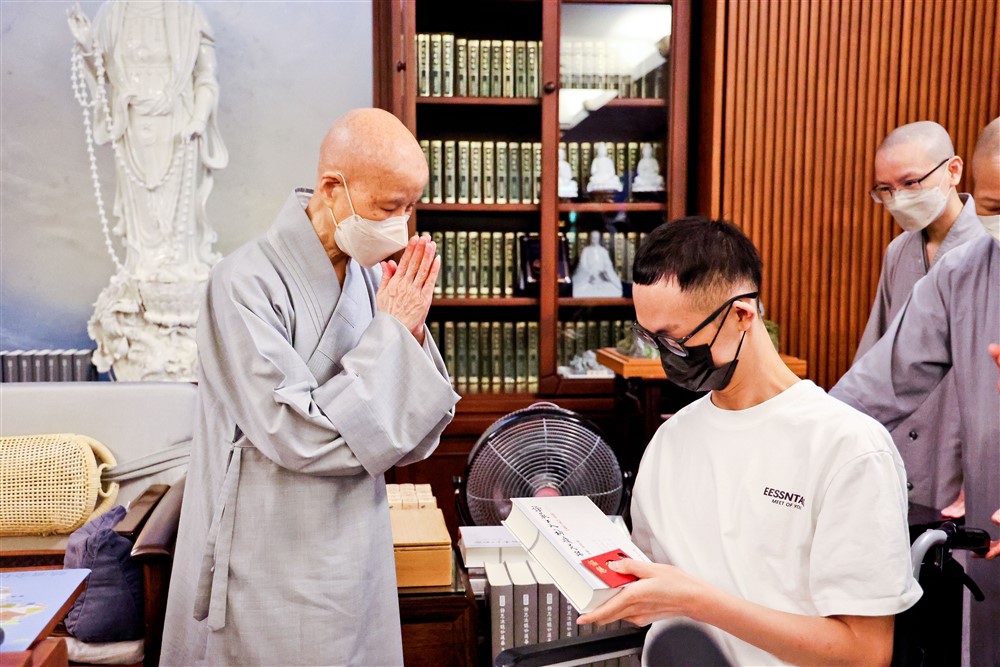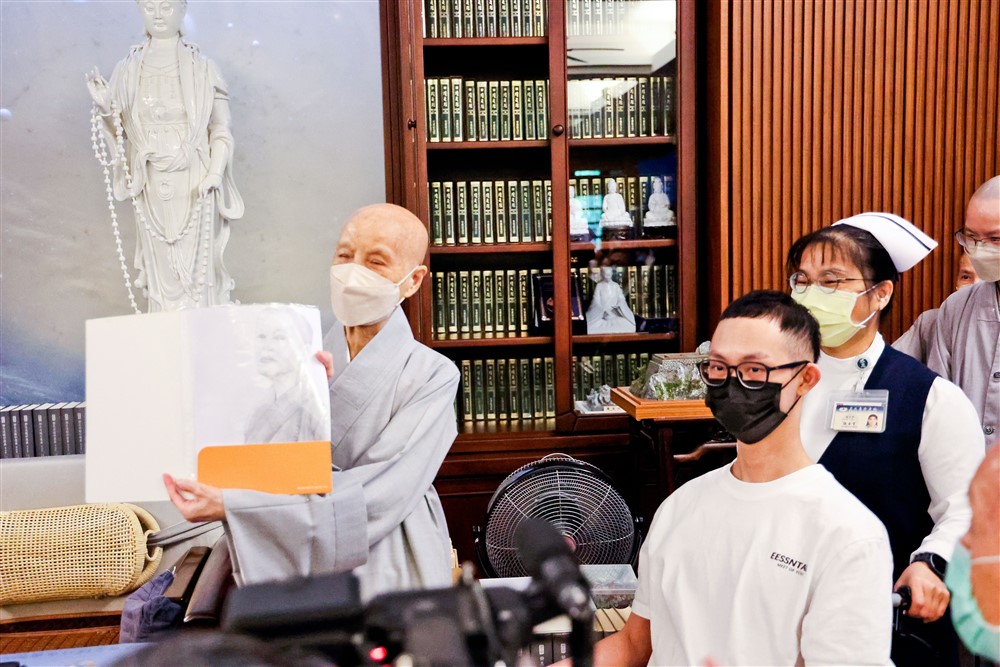 九月十八日上午,涂先生和媽媽在醫療團隊陪同下,到精舍接受上人的祝福,上人鼓勵他,並致贈今年的福慧紅包。充滿信心的他,當場接受林欣榮院長的邀約,十二月五日在臺灣醫療科技展分享他的故事。接下來,除了每月固定的內生性幹細胞療程、中醫針灸治療,他還接受整形暨重建外科的手術,終於可以解決困擾他幾個月的壓瘡問題。