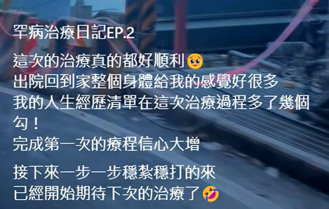 涂先生記錄治療的過程與心情變化。圖/涂先生提供