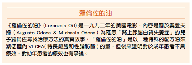 林欣榮院長簡單地說明:「這個油留在腦子裡,會造成腦髓竅的傳導功能失常,大腦的指令無法傳達到手和腳,病人在很短的時間就會死亡,這就是『羅倫佐的油』的案例。男性只有一個X 染色體,一旦X 染色體的LINK(關聯性)異常,沒有其他好方法可治療。」