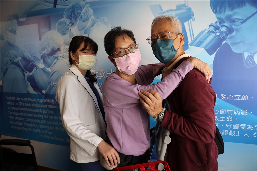 對於江女士的症狀改善,黃先生說:「太太從臥床不起,到現在可以站起來,還可以跟我聊天,真的給我們很大的希望。」他很感謝團隊對太太的照護,如今她已經可以藉由輔具走幾步路,手與腳不僅可以動,還可以抬起來,動作更是愈來愈自然,說話變得更清晰,他也可以聽得懂太太表達的意思,看著她恢復得愈來愈好,也讓他們夫妻更有信心面對未來的治療與復健之路。