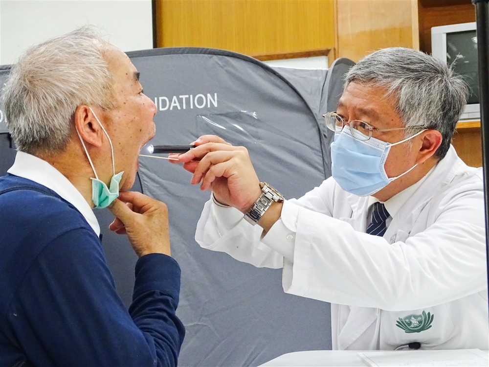 賴俊良副院長為修繕志工看診,同時衛教預防流感的防護措施。攝影/洪順發