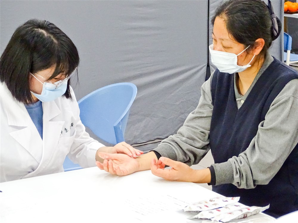 李盈萱醫師為志工把脈診斷身體狀況。攝影/洪順發