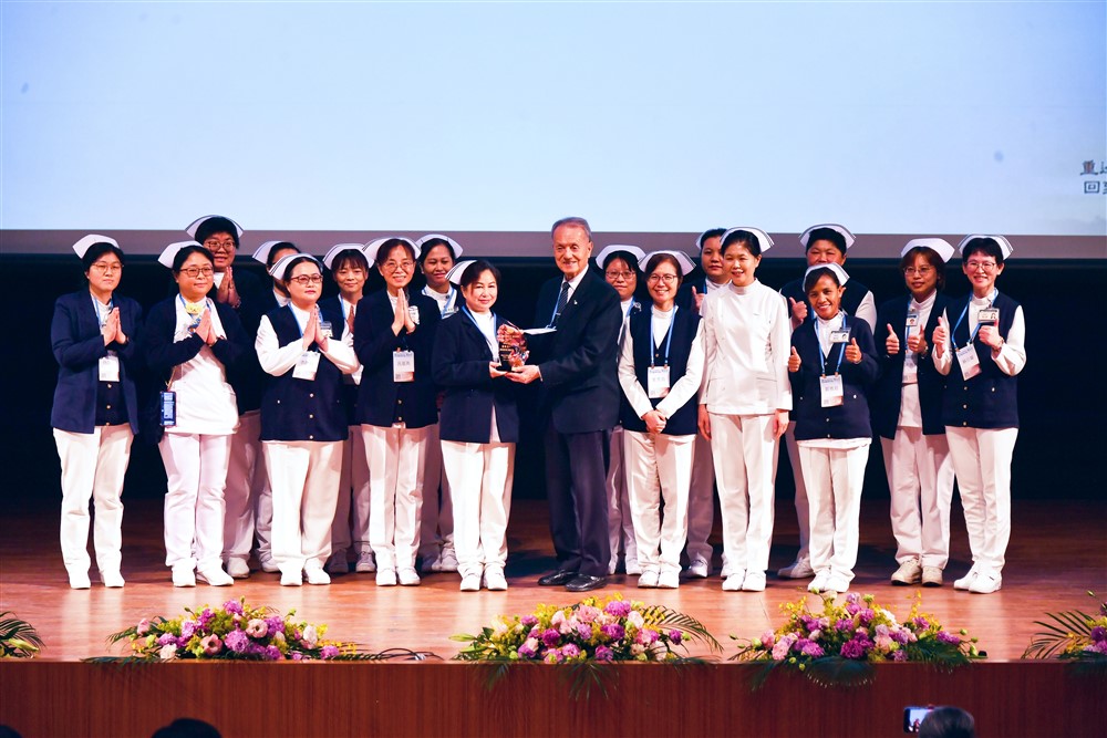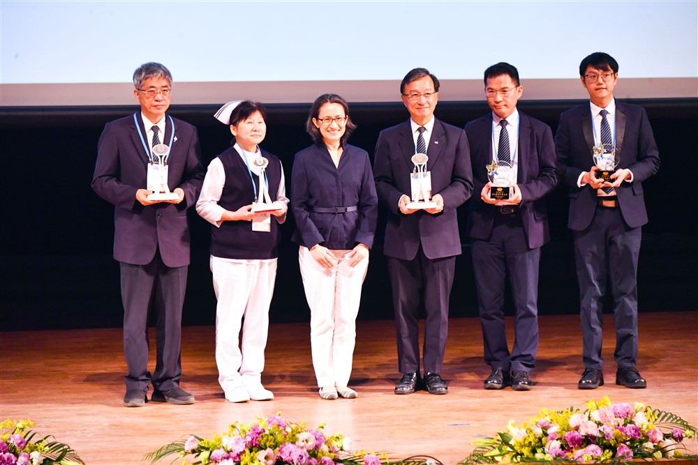 緊接著由鈞長頒發各項獎項,林俊龍執行長頒發醫療法人特殊貢獻獎給花蓮慈院護理部;醫療志業年度最佳研究成果獎,獲獎者為花蓮慈院腸胃內科雷尉毅醫師。花蓮慈濟醫院護理部以「智能輔助護理與糖共舞」榮獲國家生技醫療品質獎(護理照護服務類—智慧護理組)金獎,鍾惠君主任代表分享成果提及,該計畫聚焦慢性病照護並結合智能輔助,建立完善的病人支持系統,以提升病人自我照護能力及護理品質。