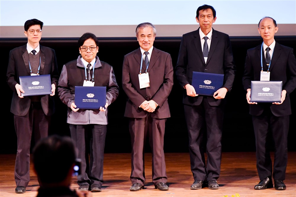 郭漢崇副執行長(中)與最佳科部研究成果競賽獎的各科代表合影,左起:花蓮慈院泌尿部泌尿腫瘤科江元宏主任、台北慈院腎臟內科洪思群主任及大林慈院腎臟內科蔡任弼主任(右二)、台中慈院神經內科郭啟中主任(右一)。攝影/廖文聰